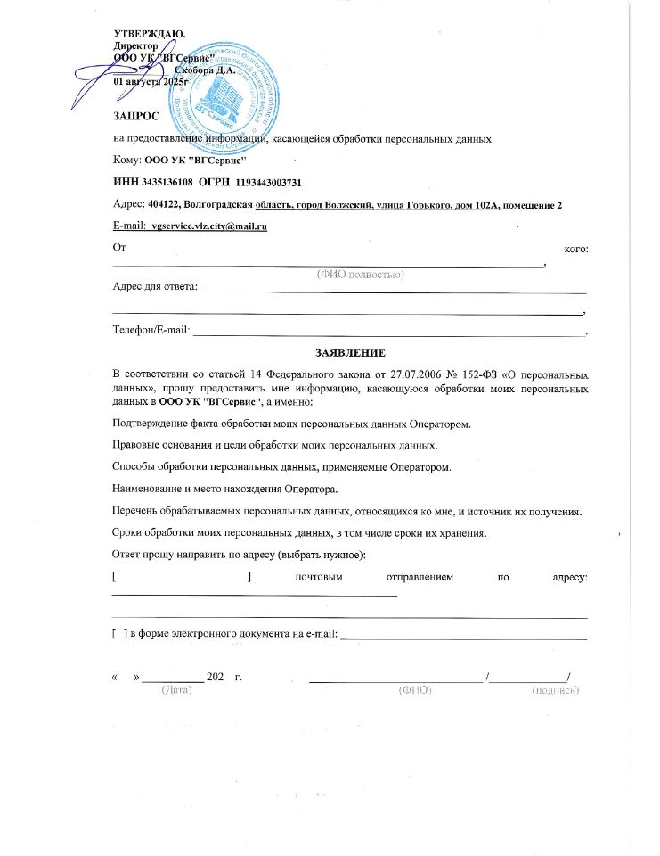 Инструмент для получения информации о том, какие именно ваши данные мы обрабатываем и как они используются.